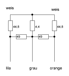 Allerdings sind das ja die Werte die sich aus Reihen und Parallelschaltung ergeben. Bei 2 Motoren in einem ergibt lila weis grau einen und orange weis grau den anderen.