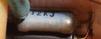 Das Bauteil auf der defekten Platine war war wohl ein Widerstand - jedenfalls hat man noch einen braunen vorne und goldenen Ring hinten sehen können - der Rest war verkohlt ... Wenn es ein Widerstand ist der auf meiner Referenz.-Platine zu sehen ist dann ist das evtl. einer älterer Baujahrs noch ohne Ringe?. Was bedeutet dann dort KJ?