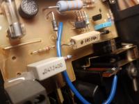 Da der Widerstand hier weder defekt ist noch Anzeichen von Erwärmung oder Verfärbung der Platine zeigt, wird der nicht stark belastet werden. Auch ist hier nicht viel Platz vorhanden.