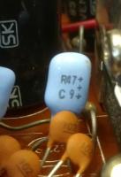 Ich hab den Heilen noch mal gemessen und er hatte 0,448µF. Im Englischen Forum war noch ein Hinweis, dass das R vor der Zahl ein "," bedeutet (R47 = 0,47µF.)