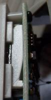 im unteren Bereich zwischen den beiden Platinen, da wo das Display die Anschlüsse auf die Platine bringt ist ein Riß, der auf ein Knicken des Displays schließen läßt.