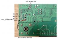 Beide Lötstellen der Sicherung haben Durchgang zum Gleichrichter oben rechts (rot eingekreist), Könnte ich nicht einfach mit einem Stück Kabel Pin9 zur Sicherung kurzschließen?