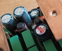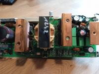 Die Sicherungen im Netzteil sind in Ordnung; mir ist aber ein Elko aufgefallen (siehe Foto, der mit der Roten Markierung). Ich bin der Meinung der ist aufgebläht...ich würde ihn mal testweise tauschen.