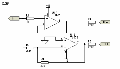 | | Evtl. genügt auch eine Widerstandsentkopplung, aber da könnte es mit dem Pegel knapp werden. |