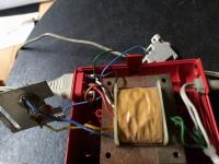 Der Aufbau ist einfach, Trafo, 2-Wege Gleichrichtung, Sicherung. Spannungsumschaltung auf 6V durch umstecken des Ausgangssteckers.