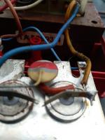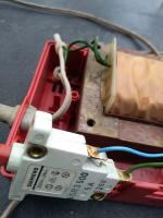 Ich habe ein älteres Batterieladegerät von Siemens (6/12V), welches keine Ausgangsspannung mehr hat. Das Gerät besitzt eine automatische Sicherung, die man durch einen roten Knopf aktivieren kann. Der Knopf lässt sich jedoch nicht reindrücken (bzw. bleibt nicht drinnen), auch wenn man ihn gedrückt hält, gibt es keine Ausgangspannung. In dem Gerät ist eine Metallplatine mit zwei Transistoren, die durch eine dünne Metallbrücke verbunden sind (siehe Photo). Diese Metallbrücke scheint eine Art zweiter Sicherung zu sein, da sie in der Mitte getrennt ist und die beiden Enden leicht nach oben gebogen sind. (An der Bruchstelle ist eine Lochung)