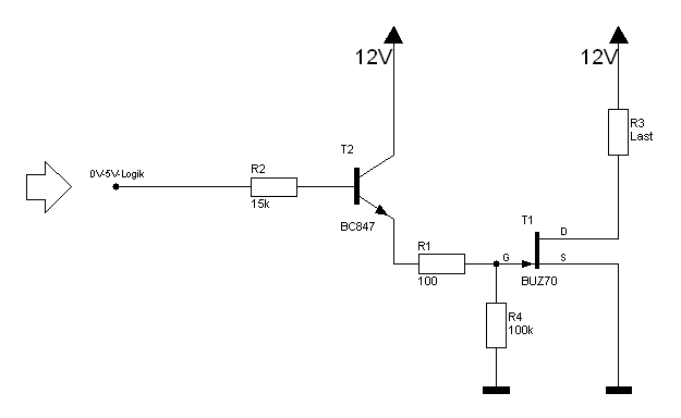 Der FET soll später eine Last schalten, die 12V benötigt. Der µC gibt aber nur 5V-Pegel raus.