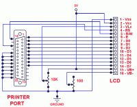 D0-D7 sind die Dateneingänge, und RS, R/W, E sind "Befehle"; alle diese Pins werden vom Parallelport des Rechners aus gesteuert.