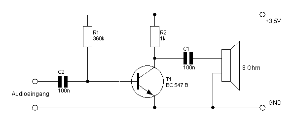 Wenn du sagst ein 8Ohm-Widerstand - könnte man da den Lautsprecher nicht gleich an die Stelle von R2 setzen?