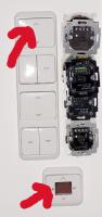Oben links ist der Schalter, der den Rolladen auch einzeln schaltet. Unterputz: Busch Jalousie-Controll II 6411 - U 101.