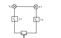 Es geht um 2 Glühlampen und 2 Schalter die in Reihe geschaltet sind.