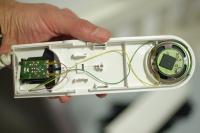 Nach dem Öffnen hab ich mich doch erstmal über den Inhalt gewundert: eine ziemlich kleine, übersichtliche Platine mit ein paar verdächtigen Standardbauteilen, ein kleiner Lautsprecher und ansonsten in erster Linie eine Menge Luft bzw. Schaumstoff. Nun ja, das macht die Sache eher etwas einfacher, wie ich denke. Morgen nehm ich die Teile mit in die Firma, in der Hoffnung, daß meine Kollegen da irgendwas messen können, was da evtl. kaputt sein könnte.