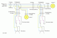 Nachtrag: Hier soll nun eine dritte umschaltbare Lampe als alternative Lichtquelle integriert werden. Das dies bei einer Wechselschaltung mit einer Lampe kein Thema ist habe ich ja oben schon geschrieben...