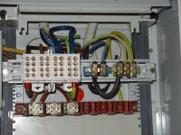 - ganz links sind der Klemmstein des Zählers und der LS-Schutzschalter