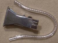 Diese Clips lassen sich auch sehr gut als Ersatz für Röhrenanschlüsse (Gitterkappen und seitliche Schirmgitterschrauben) verwenden. Besonders wenn mal eine Röhre extern (oder auf einem RPG) geprüft werden soll. Diese Clips lassen sich gut löten. Nachdem man eine Seite der Befestigungsklammer für die Öse aufgebogen hat, läßt sich diese leicht entfernen und man kann entweder eine Litze anlöten oder klemmen. Die Trapezform kann man mit einer Schleifaktion auf die persönlichen Wünsche abändern.