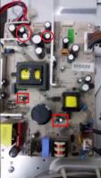 Ich habe völlig vergessen zu erwähnen, welche Elkos aufgebläht waren. Ich habe die 3 Elkos Rot umkreist.