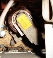 habe ein Problem mit meinem betagten Grundig Supercolor 70-260 A CTI. Ca. eine Minute nach dem Einschalten fängt er an zu zischen. Es klingt wie wenn Luft aus einem Reifen entweicht. Erst nur ganz kurze einzelne Zischlaute, dann steigert sich das zum Dauerton. Das Geräusch kommt aus Richtung Zeilentrafo. Ich habe mal ein Bild von dem Teil gemacht.
