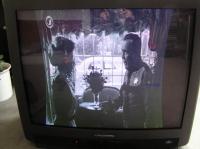 Der Fernseher läßt sich normal einschalten, aber beim Fernsehbild wie auch beim DVD-Bild über Scart sind die Seitenränder konkav nach innen gewölbt.