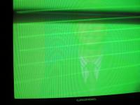 Die Symptome sind: Plötzlich schaltet sich der Fernseher aus heiterem Himmel in standby. Nach erneutem Einschalten erscheint ein vollständig grünes Bild mit dünnen gelben Streifen (s. Bild). Das TV-Bild ist noch leicht im "Hintergrund" zu erahnen. Ton ist normal. Nach wenigen Sekunden schaltet sich der Fernseher erneut in den standby.