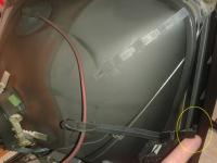 bei meinen Philips Fernseher war der Netzschalter defekt und beim Öffnen des Gehäuses ist mir ein Kunststoffteil abgebrochen (vorne der Klip, gelber Kreis) das am Anodenkabel vom Zeilentrafo befestigt ist.