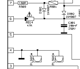 R914 und C901 sind auf dem Board tatsächlich so wie im Schaltbild angeordnet. Hat aber jahrelang so funktioniert.