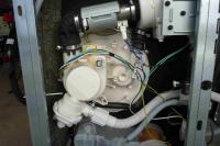 Genauso könntest Du zur weiteren Fehlersuche den Widerstand vom Heizelement messen. Der sollte ca. zwischen 20-30Ω liegen. Dazu aber die Maschine vom Netz trennen und die beiden blauen Zuleitungen vom Heizkörper abziehen.