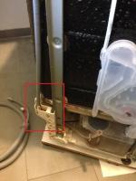 Es sieht so aus, dass sich das Wasser unten in der Maschine sammelt (bzw.