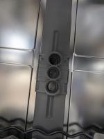 Der Oberkorb läuft zwar geschmeidig bis fast ganz nach hinten. Dann aber klemmt der Schiebemechanismus, der hinten am "Sprüharm-Oben" dafür sorgen soll, dass der Wasseranschluss für den Sprüharm genau auf das Loch des Zuführrohrs hinten an der Innenwand positioniert wird.