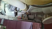 Rechts von vorne gesehen, den Dampfkondensator erneuern, der wurde konstruktiv verbessert und Bestückung im Oberkorb beachten, der oberste Sprüharm unter der Decke darf nicht blockiert sein, sonst sprüht der in den Luftkanal.