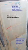 Im Zweiten bild habe ich die Wassertasche oben dargestellt und vermute, dass das dargestellte "tropfen" in die oben offene Salzfraktion in der Wassertasche , die dann überläuft, und das salzige Wasser in den Spülraumn trägt, mein Problem ist.