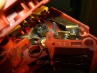 habe zwischenzeitlich mal 2 "bolzen" entfernt, dann geht der rote hintere teil entfernen, dort wo es schaltet