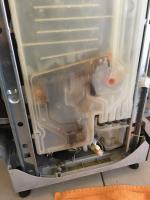 Ich habe ihn mal rundherum geöffnet. In der Bodenwanne stand wohl noch nie Wasser, sie sieht extrem sauber aus. An der linken Seite gibt es eine kleine Wanne, welche hingegen hin und wieder dreckig wird, siehe Foto. Außerdem sieht die "Regenerierdosierung" ziemlich verdreckt aus, könnte das das Problem sein?