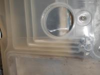 Die Wassertasche habe ich soweit mit Gebissreiniger und Essiessenz (im eingebauten Zustand) ziemlich sauber bekommen aber an einigen schlanken/engen Stellen im Rohrsystem befinden sich noch Ablagerungen / Kalkbrösel / Sand.