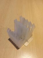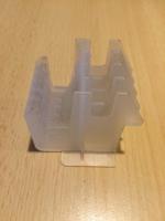 Die zwei ca. 5x5x6 cm großen Teile sind aus transparentem Plastik und kümmern sich wohl um die korrekte Position der Dämmplatte bzw. um den richtigen Abstand des Blechs von der Tür.