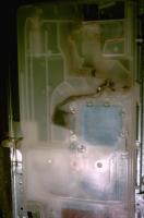 Ungefähr in der Mitte der Wassertasche geht ein Rohr nach hinten weg und verschwindet mit einem Gummistopfen abgedichtet in der Rückwand.