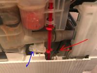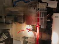 Absolut korrekt, es steht/stand Wasser unten in der Wanne. nicht viel aber genug den Schalter an der Seite auszulösen. (RoterPfeil, wo das Wasser stand)