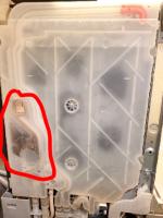 Ich habe rausgefunden, dass es die Wassertasche gibt, auf der linken Seite des Spülers. Diese sieht eigentlich ok aus, aber hat auch einen brauen Bereich.