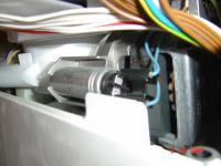 Die fragliche Druckdose ist bei meiner Maschine ganz unten von vorn gesehen, die rechte Seitenwand entfernte ich und konnte dann problemlos an den fraglichen Schlauch kommen.