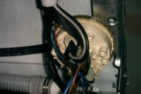 Das Bild zeigt den Niveauschalter (Druckdose), der Schlauch führt zur Luftfalle, die Luftfalle ist mit dem Trommelinnern verbunden.