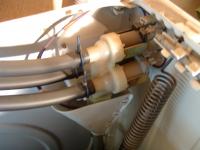 zu allem überdruß, als ich eben die maschine anschalte und starte, tritt hinten wasser aus (von hinten betrachtet, ganz links auf halber höhe). vermutlich hat der techniker die maschine nicht wieder richtig zusammengeschraubt (ich war leider nicht da als er hier war). ich habe auch so eine idee, woran das liegt, denn oben auf der maschine liegt ein hellgrauer plastiktrichter (t-nr 1548700).