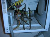 Ich denke das ich den Tachogenerator gefunden hab (Bild 1). Von diesem gehen 2 kleine Kabel ab, alles ist fest. Hab den dann einfach mal abgeklemmt und die Wama kurz laufen lassen, ohne sagt der Motor nix mehr. Hab auch alle Schrauben und die restlichen Kontakte geprüft, ist alles richtig dran. Was ist das für ein Bauteil was auf Bild 2einfach so in der Luft hängt, Kondensator? der hing schon so als ich die Wama geöffnet habe.