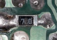 Das Bauteil mit der Bezeichnung "7X0" (700 oder 780, ist leider nicht so genau zu erkennen) müsste ein Widerstand sein mit 700 oder 780 Ohm, oder?