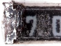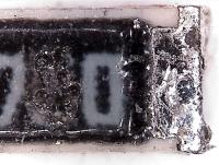 Auf der nächsten Vergrößerungsstufe, dich ich im ausgebauten Zustand von dem Widerstand machen kann, ist die Beschädigung der Widerstandsschicht besser zu erkennen und in der Mitte könnte tatsächlich eine "5" stehen (horizontaler Strich oben rechts und Bogen unten links).