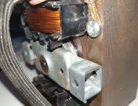 In dem defekten Motor ist dieses Teil nämlich komplett zerbröselt, womit der Rotor unten gegen das Lagerschild schlägt und sich verkantet, denn er ist am gegenüberliegenden Lager mit einer Feder auf Spannung gehalten. Somit bleibt der Motor stehen.