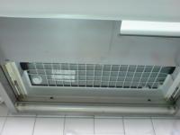Habe die Filter ausgebaut und das Gehäuseunterteil mit der Elektronik abgeschraubt. Daran ist ein Kippschalter befestigt, der beim Herausziehen des Auszugs betätigt wird und damit wohl irgendwie einen Kurzschluß verursacht.