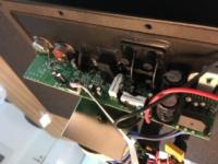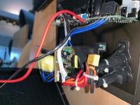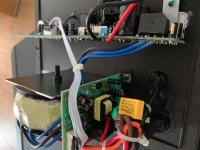 Immerhin erkennt man den Wandlertrafo eines Schaltnetzteils und ein Relais. Der kleine Trafo dürfte die Geräuschquelle sein.