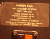 Ich habe auch nach dem Namen meiner Boxen Martin LAB 312 gegooglt, und ebenfals nach Eastman Sound wie auf dem Typenschild vermerkt,aber ich bin nicht fündig geworden.