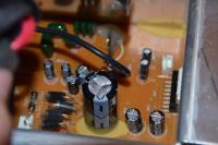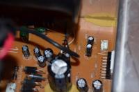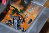 Ich habe das Gerät mal aufgeschraubt und nach verdächtig aufgeblähten Kondensatoren oder Brandspuren gesucht, kann aber nichts erkennen. Ich habe versucht Fotos zu machen, die Ihr unten seht, auf Wunsch kann ich noch genauere, bessere machen.