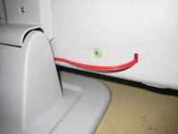 Nun zum Problem wo die 3V aus den beiden in Reihe geschalteten Mignonzellen hinmüssen. Plus geht an den Widerstand 3128 und zwar an die Stelle wo der Widerstand näher zum großen Elko (2119) liegt. Minus wird angelegt an der Brücke 9003. An diesen beiden Punkten habe ich dünne Litzeleitungen angelötet. Das geht sogar ohne die Platine runterzuschrauben. Die beiden Leitungen habe ich durch ein Loch in der Rückwand, unterhalb vom VGA-Anschluß nach außen geführt, von dort in den Bildschirmfuß.