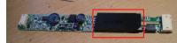 Und genau da liegt auch schon der Fehler. Die Stromversorgung der Hintergrunfbeleuchtung des TFT hatte eine Macke. Das schwarze Kästchen, ihr seht es im Bild, hat auf der Rückseite Blasen geworfen, daher denke ich, dass es heißgelaufen ist. Die restlichen Bauteile auf der Platine sind durchgeprüft und in Ordnung, sie haben nichts abbekommen.